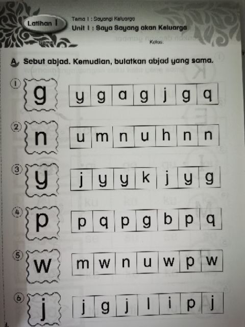 Bahasa Melayu Tahun Satu Latihan Keluarga Latihan Tema Kelas Lembar Kerja